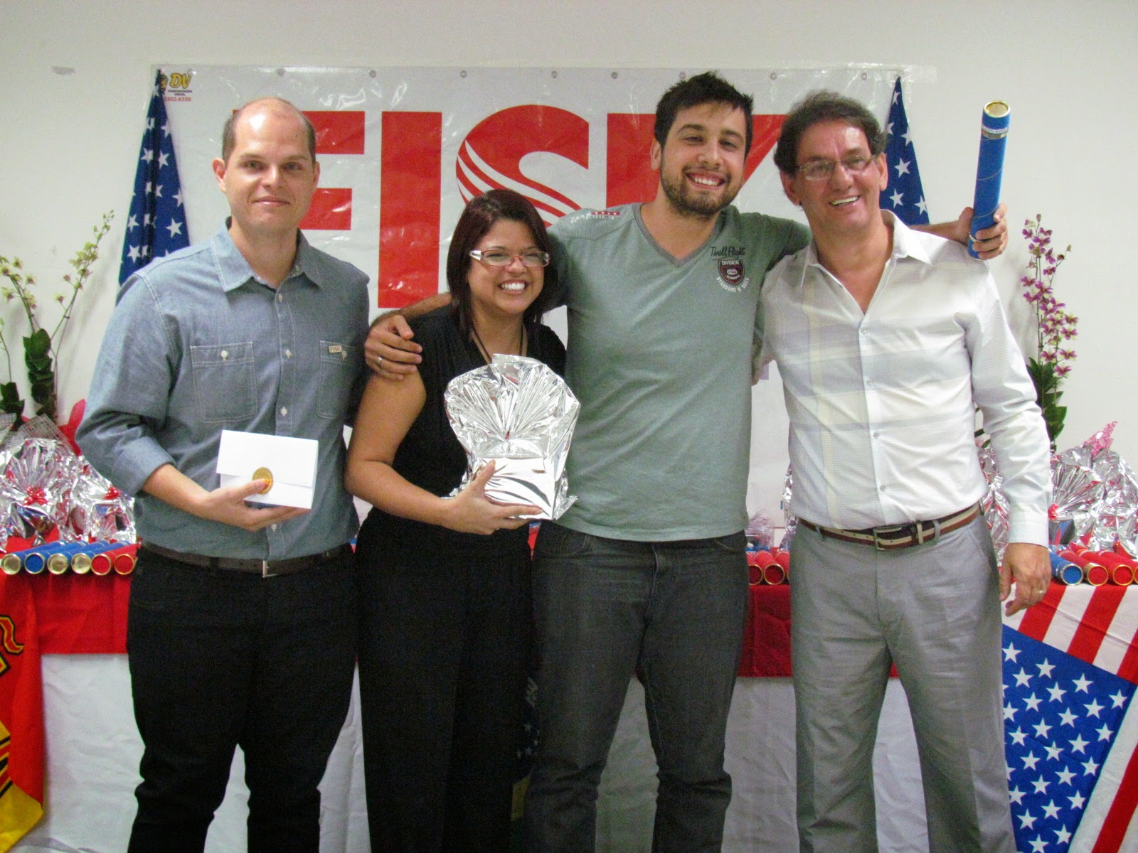 Na cerimônia, os alunos receberam, junto com seus certificados, presentes especiais diretamente dos representantes da direção, da coordenação e da docência da FISK.